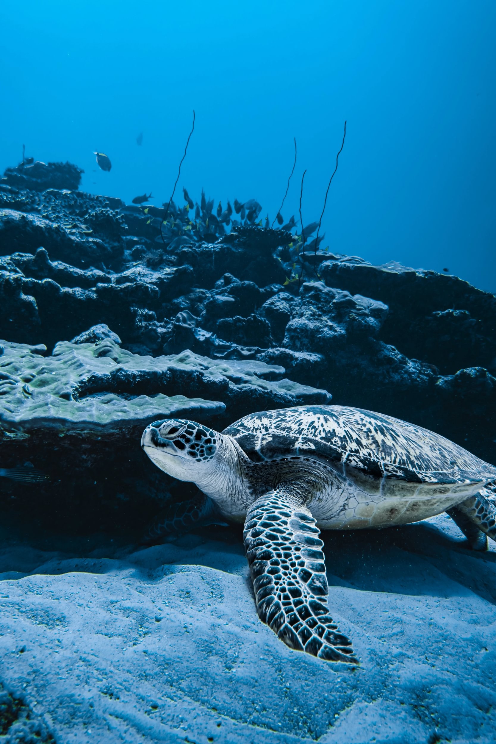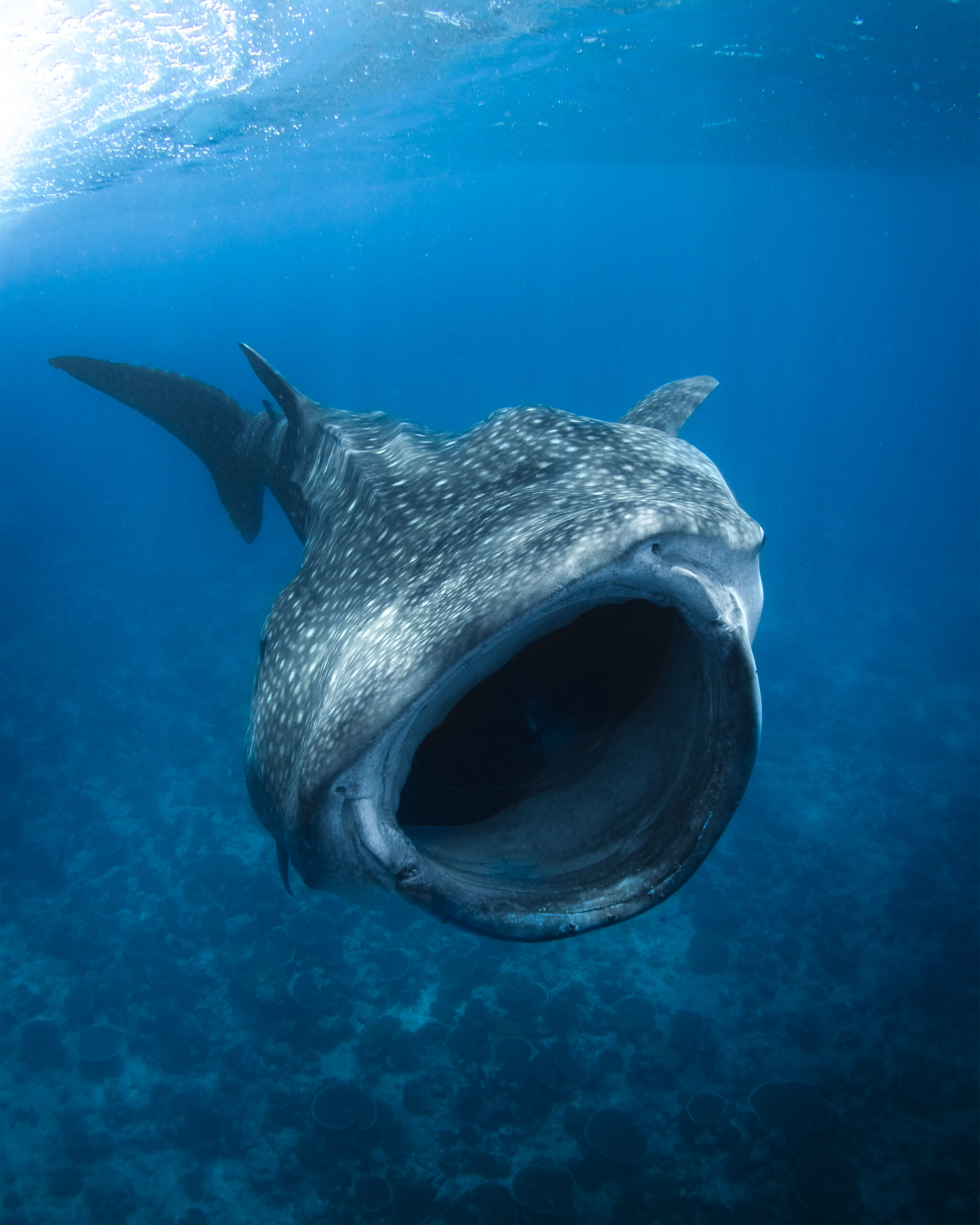 To encounter them is to witness grace on a scale rarely imaginable. Whale sharks, the largest fish on the planet, move with a serenity that belies their size. Up to 12 metres long, patterned in constellations of white across slate-grey skin, they drift through the atolls in search of plankton. There is no menace in them, no aggression — only a calm, ceaseless motion that makes their enormity all the more humbling. Manta rays, by contrast, are aerialists of the sea. With wingspans stretching five or six metres, they sweep and loop in movements so fluid they appear choreographed. When they gather in numbers, the ocean becomes a theatre of flight.